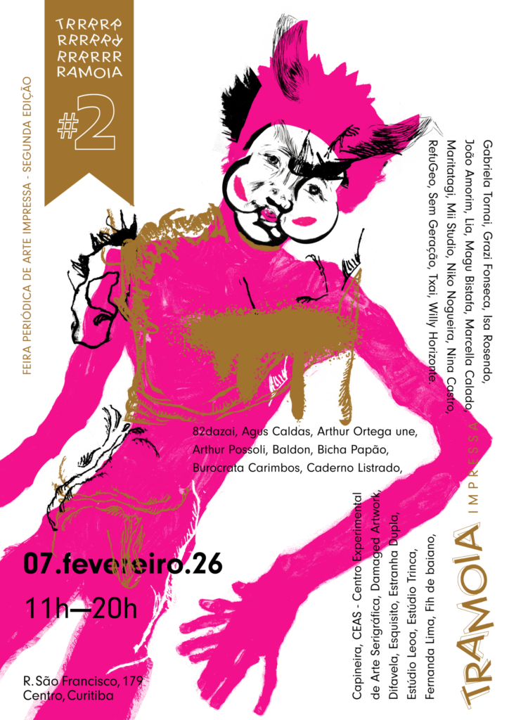 A Tramoia Impressa realiza no dia 07 de fevereiro, das 11h às 20h, a sua segunda edição, na Rua São Francisco, 179, no centro histórico de Curitiba. Feira independente dedicada à arte impressa e às publicações gráficas, a Tramoia reúne nesta edição 33 artistas e estúdios selecionados entre 194 inscrições, vindas de diferentes regiões do Brasil.